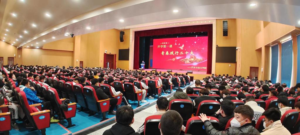 2023年3月15日中午12:30分,汽车与动力学院在工坊楼学府礼堂隆重举行青春践行党的二十大——开学第一课主题大会。