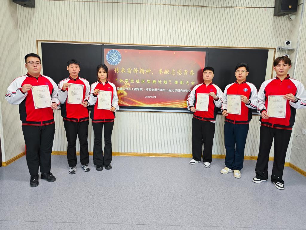 在本次会议上,哈西街道办事处工力所社区授予能源与汽车工程学院“大学生进社区优秀团体”称号,同时为宋泽昊同学颁发2024年度“最佳志愿者”徽章,并为其他5位学生代表颁发了志愿者证书。