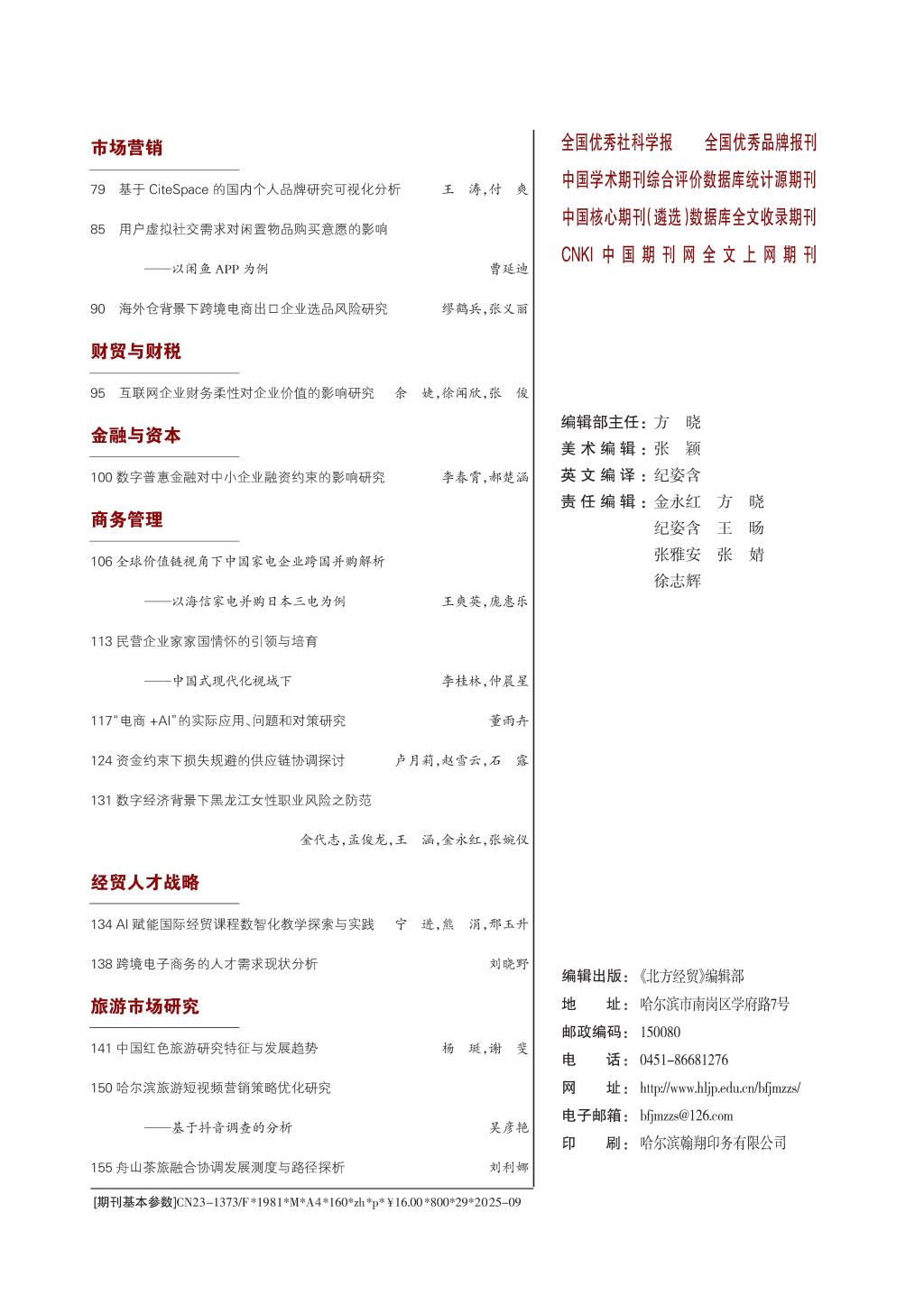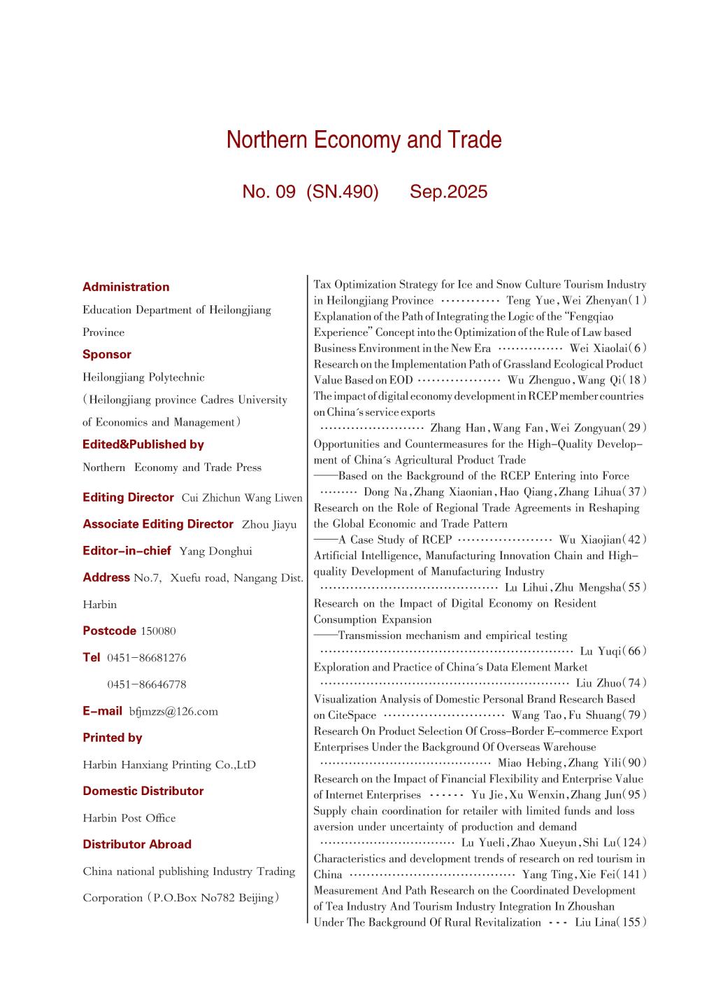版权所有:北方经贸杂志社 地址:黑龙江省哈尔滨市南岗区学府路5号 邮编150080 电话:0451-86681276 86646778 邮箱:bfjmzzs@126.com