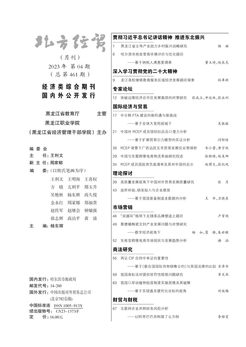 版权所有:北方经贸杂志社 地址:黑龙江省哈尔滨市南岗区学府路5号 邮编150080 电话:0451-86681276 86646778 邮箱:bfjmzzs@126.com