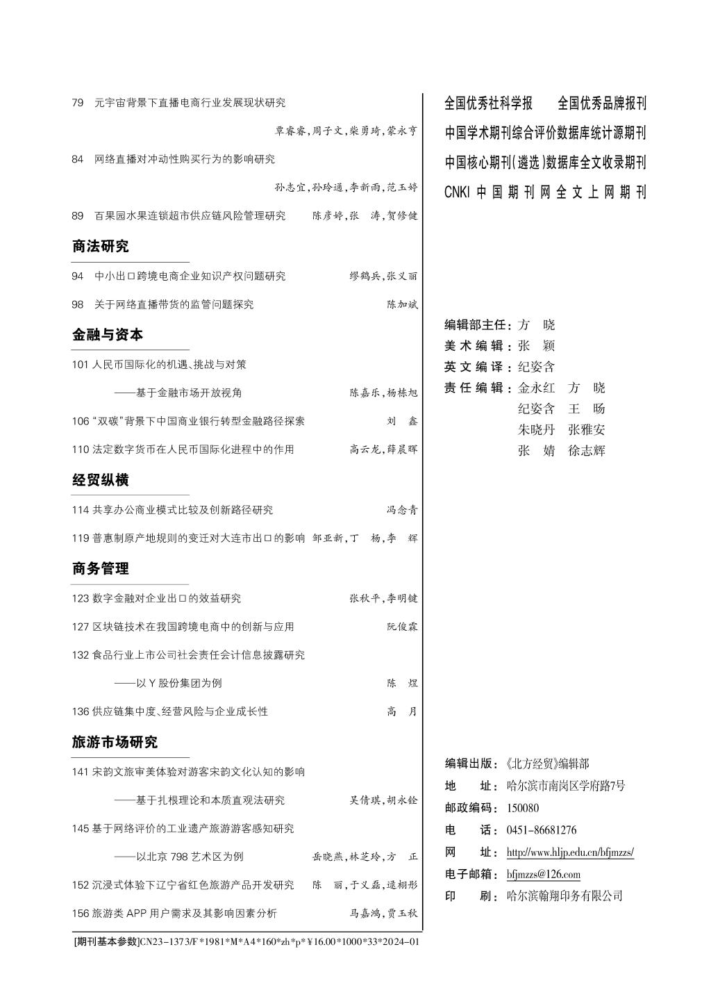 版权所有:北方经贸杂志社 地址:黑龙江省哈尔滨市南岗区学府路5号 邮编150080 电话:0451-86681276 86646778 邮箱:bfjmzzs@126.com