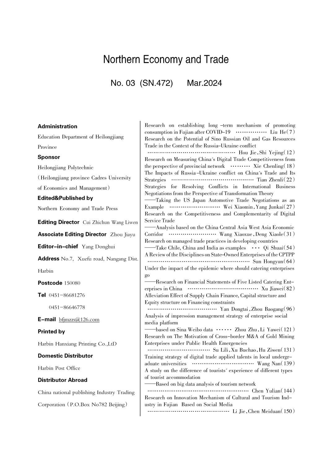 版权所有:北方经贸杂志社 地址:黑龙江省哈尔滨市南岗区学府路5号 邮编150080 电话:0451-86681276 86646778 邮箱:bfjmzzs@126.com