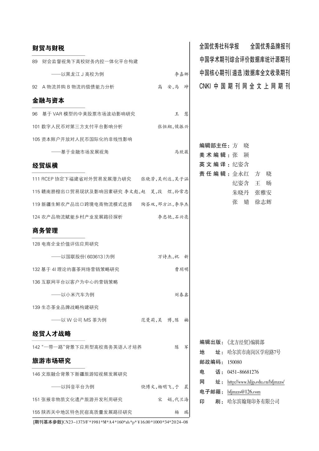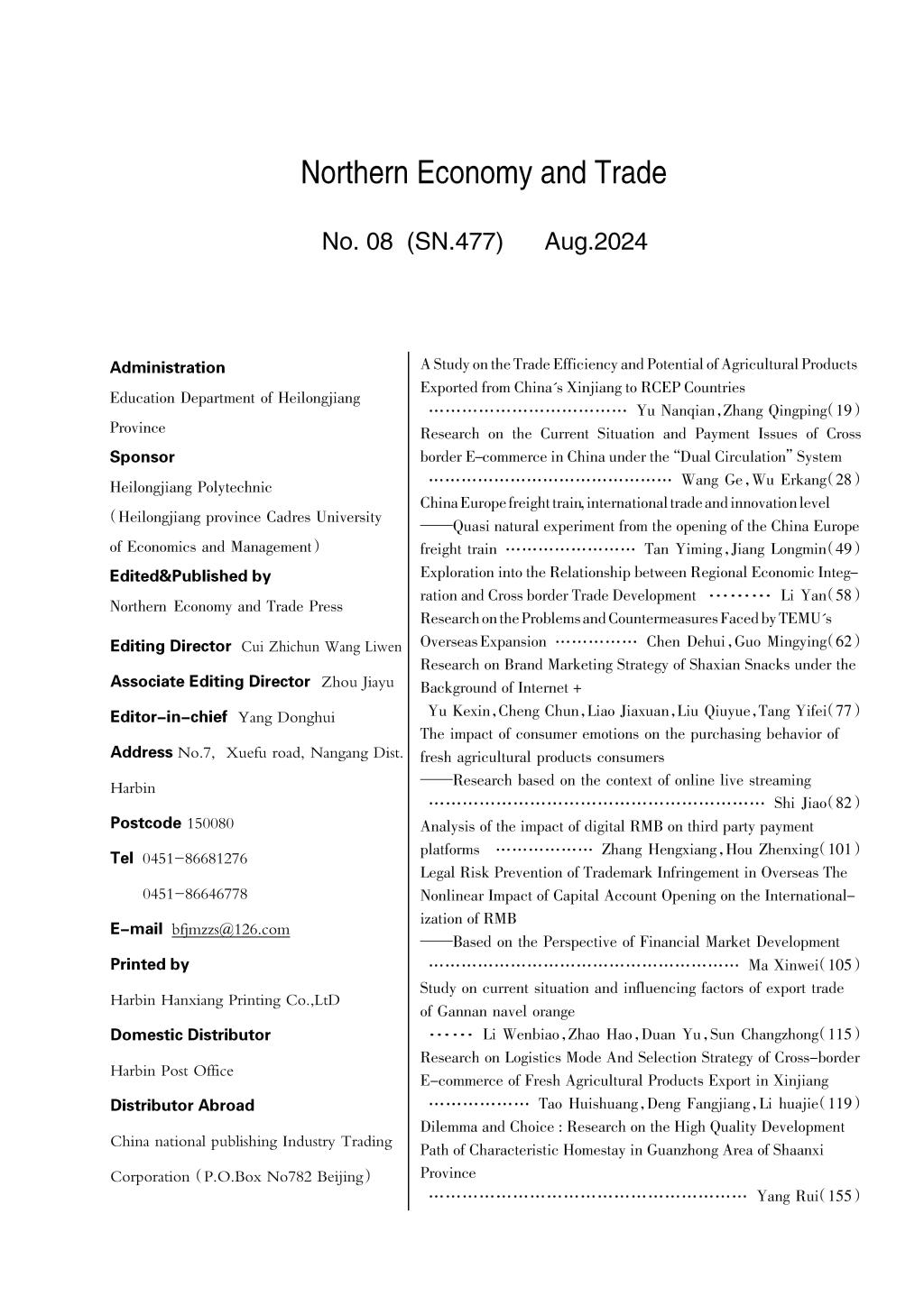 版权所有:北方经贸杂志社 地址:黑龙江省哈尔滨市南岗区学府路5号 邮编150080 电话:0451-86681276 86646778 邮箱:bfjmzzs@126.com