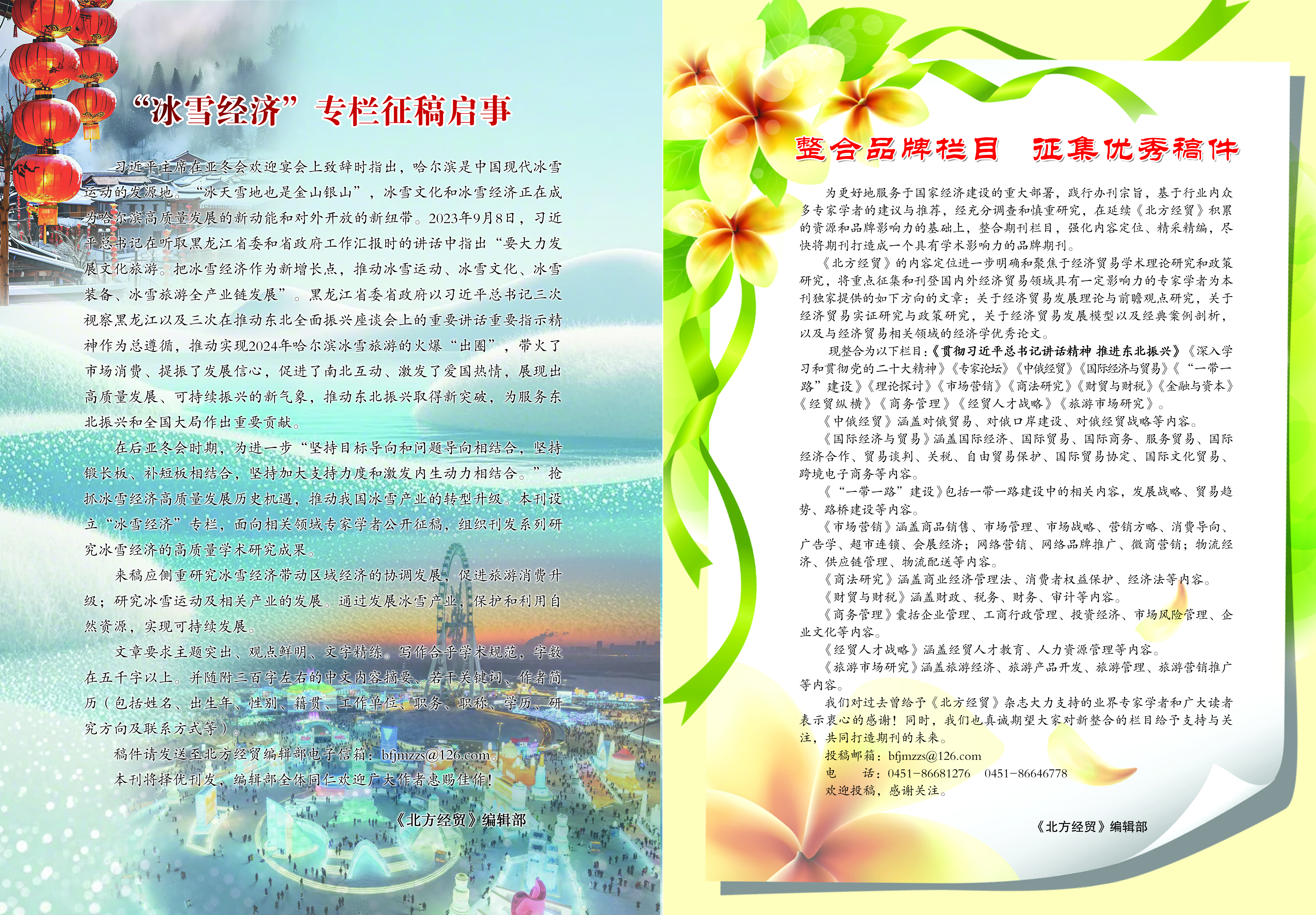 版权所有:北方经贸杂志社 地址:黑龙江省哈尔滨市南岗区学府路5号 邮编150080 电话:0451-86681276 86646778 邮箱:bfjmzzs@126.com