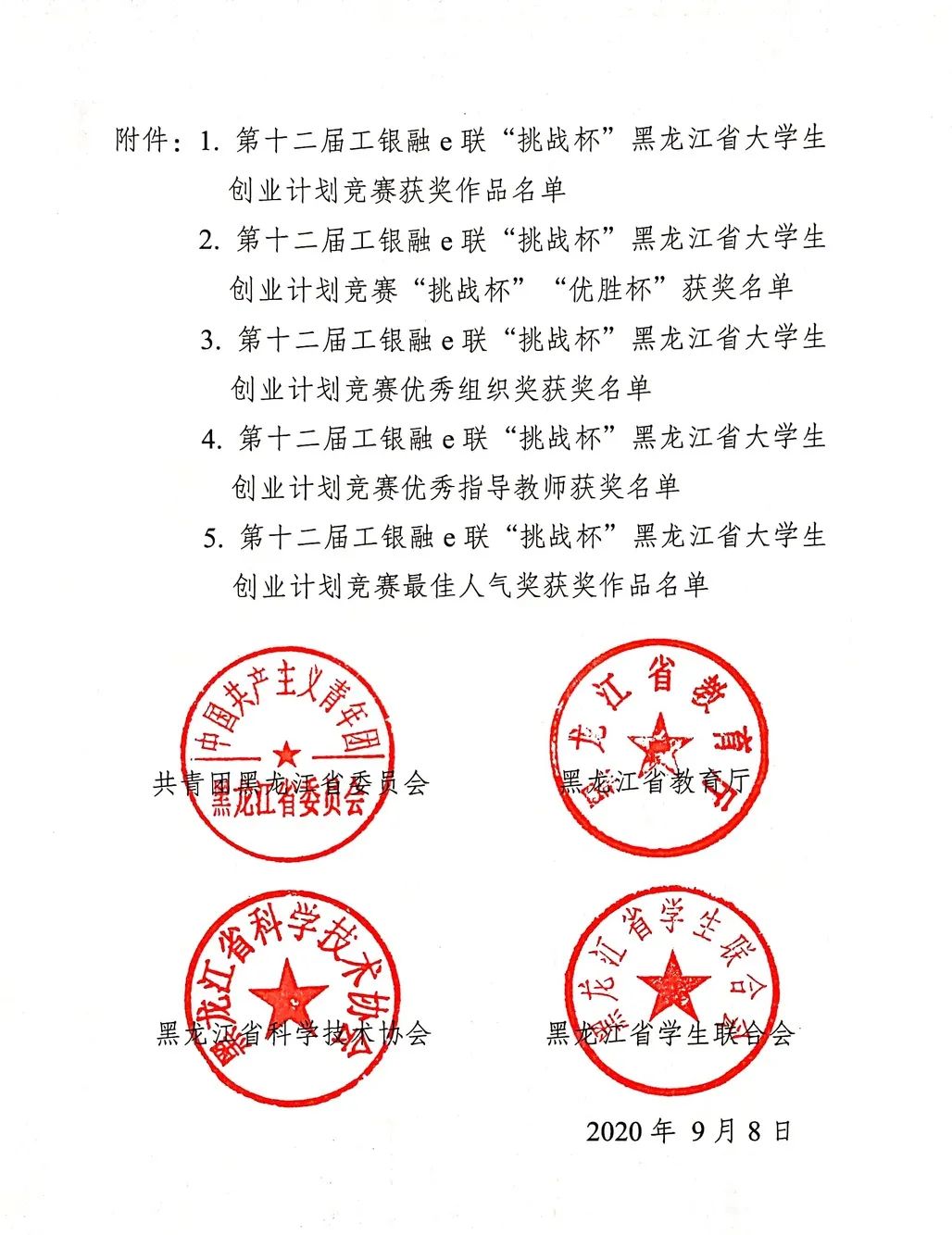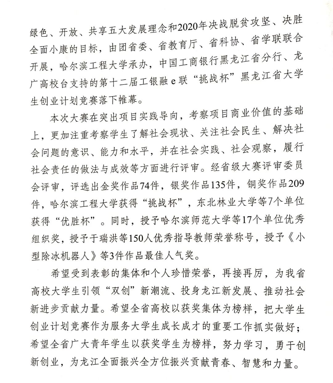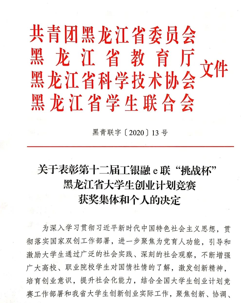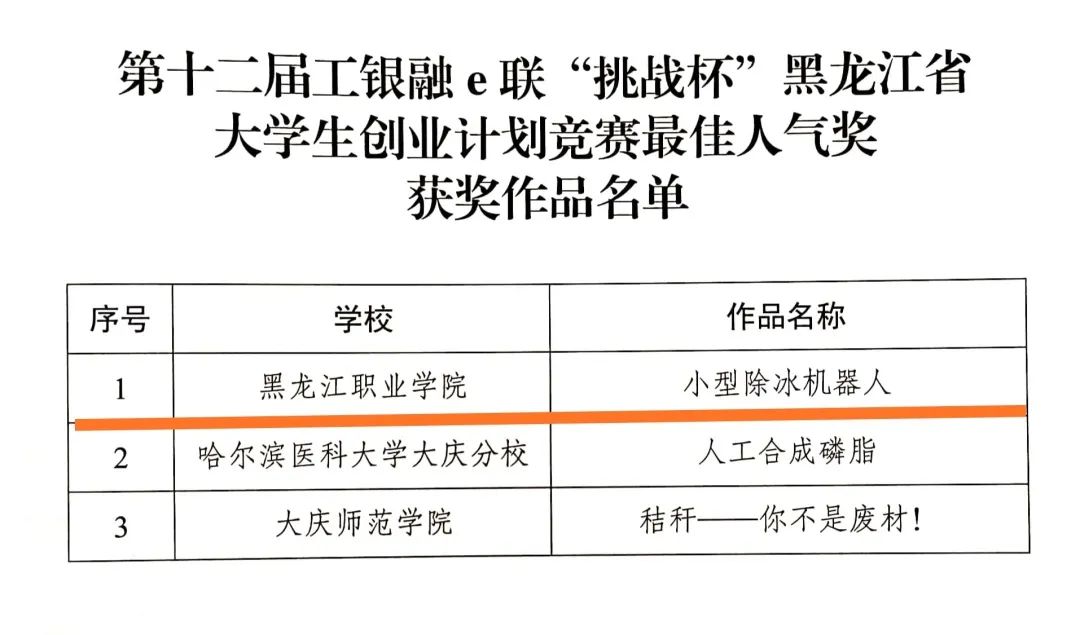 9月8日,团省委、省教育厅、省科学技术协会、省学生联合会联合印发了《关于表彰第十二届工银融e联“挑战杯”黑龙江省大学生创业计划竞赛获奖集体和个人的决定》(黑青联字[2020]13号)文件,在全省各高校209件作品入围决赛的作品中,beat365参赛项目荣获大赛金奖4项、银奖2项、铜奖3项,有3项作品被推荐至国赛,由机械工程学院潘胤卓老师指导、肖童同学负责的《小型除冰机器人》项目以总票数排名第一的成绩荣获“最佳人气奖”,beat365荣膺大赛“优胜杯”,创造了beat365“挑战杯”参赛史最佳成绩。