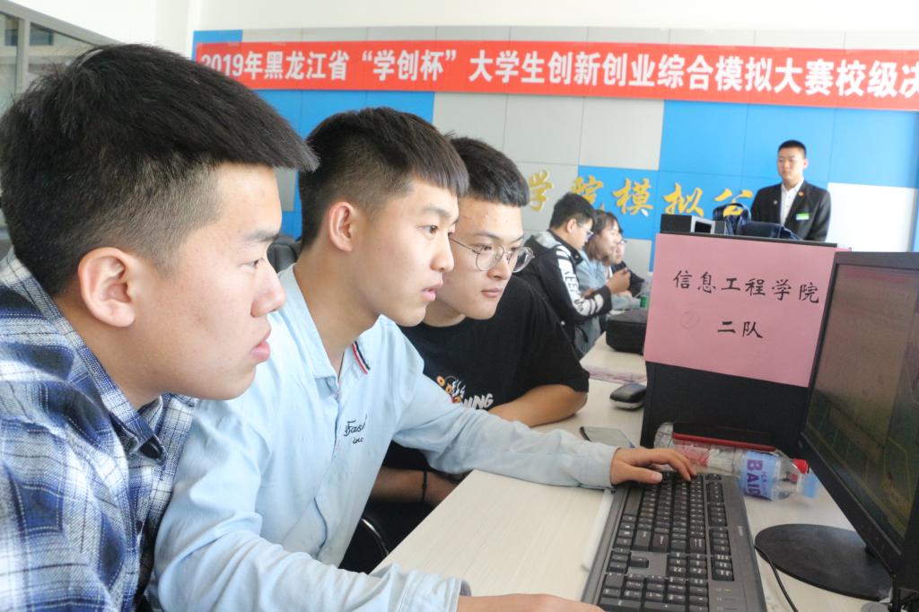 5月7日下午,2019年黑龙江省“学创杯”大学生创新创业综合模拟大赛校级决赛在清华楼八楼模拟公司实训室举办,经过初赛报名和选拔,来自工商管理学院、食品药品学院、信息工程学院3个分院的11支学生参赛团队入围校级决赛。