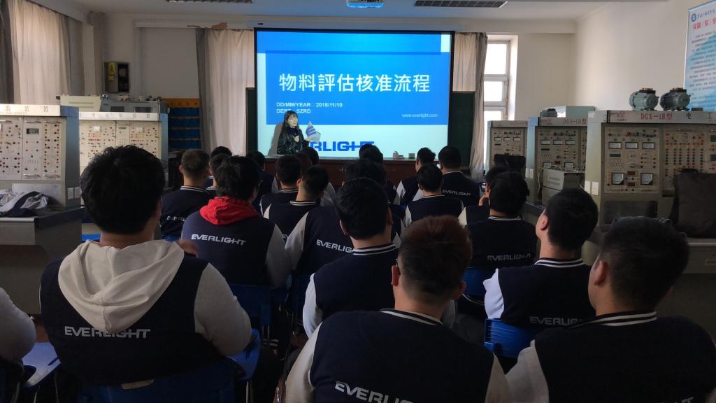 2019年4月22-26日,亿光电子(中国)有限公司为我学院电子信息工程技术专业学生进行为期五天的企业实训。亿光电子(中国)有限公司人资部总经理蔡明洋、人事专员何萍、研发部主任蔡香妹、研发部课长毛浩浩及王昊为“亿光电信”冠名班进行企业技术讲座。主要介绍LED原理,产品相关制程及产品应用,亿光开发系统面的应用及亿光新物料导入的流程等内容。