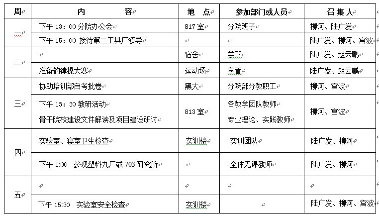机械工程学院第九周活动安排表
