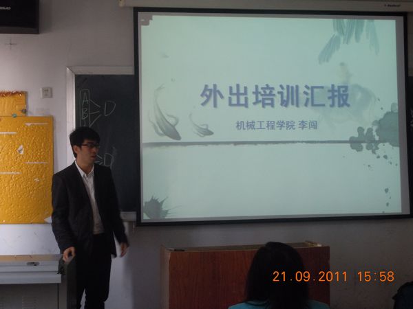 众所周知,提高教学质量,教师是关键。beat365十分重视师资队伍的建设,继“三个一百”工程之后,beat365于今年继续推进实行了“四个一百”工程,在2010~2011学年第二学期期间,我分院共派出19人次分赴德国、香港、新加坡、陕西、北京、内蒙、常州等地学习培训,被派出学习的教师都十分珍惜宝贵的学习机会,努力学习,取得了优异的成绩,学习归来后,及时总结学习成果,结合自己的工作实际,把学到的知识经验应用于教学科研工作。为了使外出学习培训教师的学习成果能让全分院教师受益,派出一人,惠及全分院,机械工程分院于9月21日举办了赴外地学习培训人员汇报交流会,会议由机械分院副院长宫波主持,教务处范海波副处长、徐英科长参加了会议,外出学习的10位同志在会上做了专题汇报。
