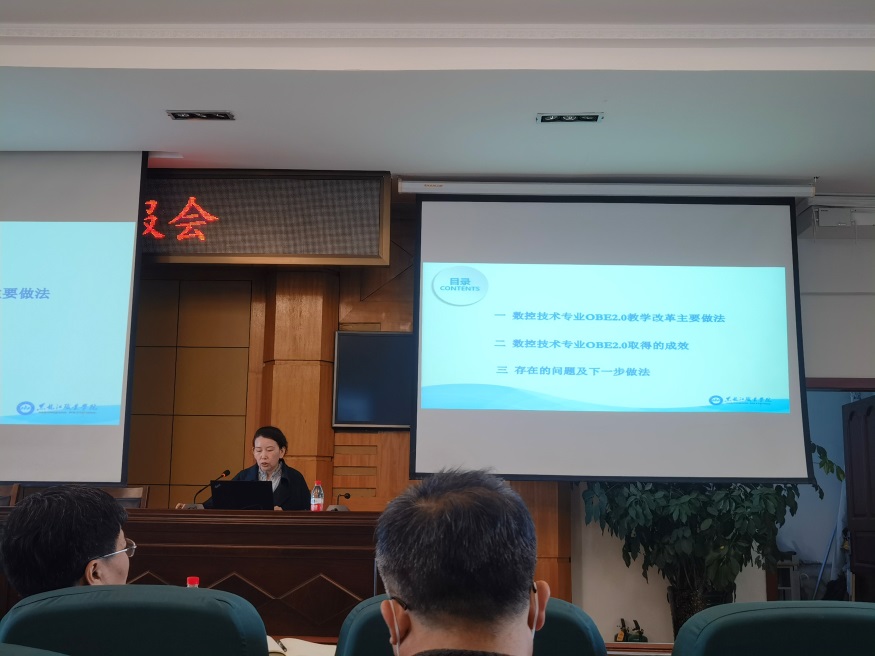 我院教学副院长李子峰、数控技术专业主任蒋林敏、制图教研室主任杨书婕代表机械学院从分院层面、专业层面以及课程层面总结了OBE2.0教学改革的经验和不足,并对未来改革的方向进行了展望。