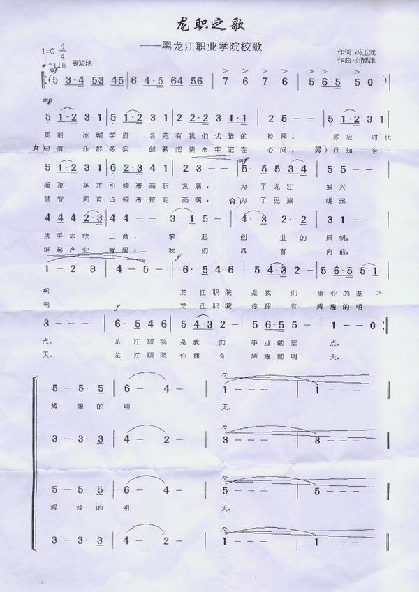 龙江职院你拥有辉煌的明天,辉煌的明天。