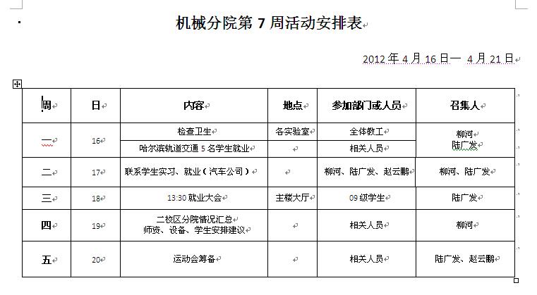 机械分院第七周重点工作推进表