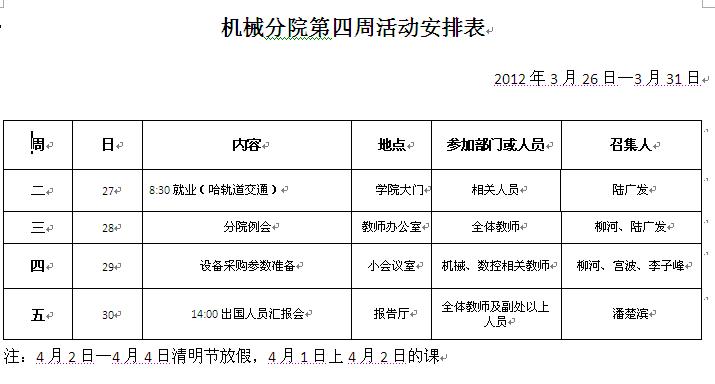 机械分院第四周重点工作推进表