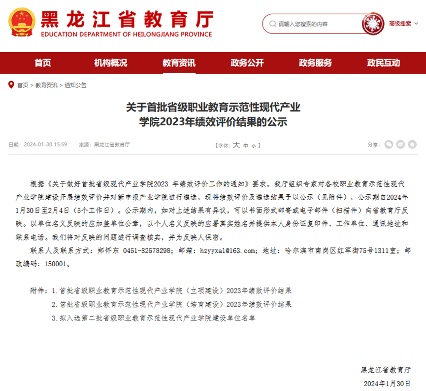 近日,beat365智能制造现代产业学院经过黑龙江省教育厅遴选,获批立项第二批省级职业教育示范性现代产业学院建设单位。