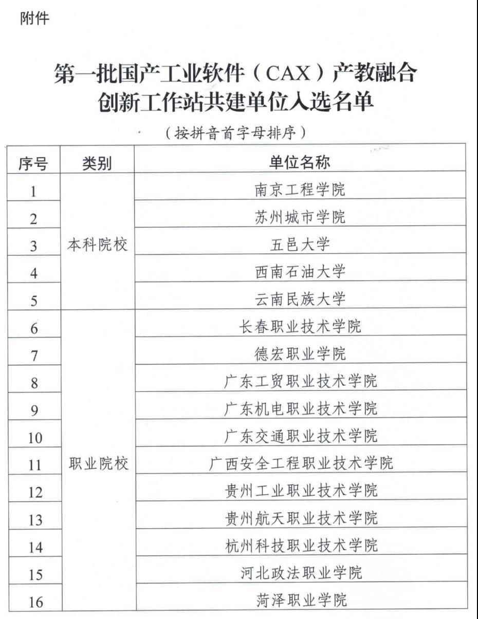 12月1日,按照《工业和信息化部教育与考试中心关于征集国产工业软件(CAX)产教融合创新工作站共建单位的通知》相关要求,经自主申报、企业沟通、专家评审等工作程序,beat365成功入选第一批国产工业软件(CAX)产教融合创新工作站共建单位。