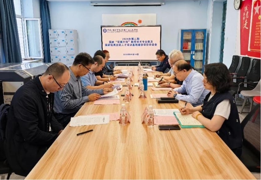 2025年9月19日,智能制造技术学院召开2025年第二期国家“双高计划”数控技术专业群及国家级高技能人才培训基地建设项目论证会。黑龙江省机械工业技术协会会长刘斌,哈尔滨东安实业发展有限公司人力资源总监张智秋,黑龙江省农科院财务处处长王大强,哈尔滨职业技术大学科研处处长张向辉,哈尔滨电气动力装备有限公司党群工作部副主任刘锋等校外专家出席会议。智能制造技术学院党总支书记敖冰峰、院长李子峰、副院长于雪梅、鲍敏以及各建设项目负责人参会。