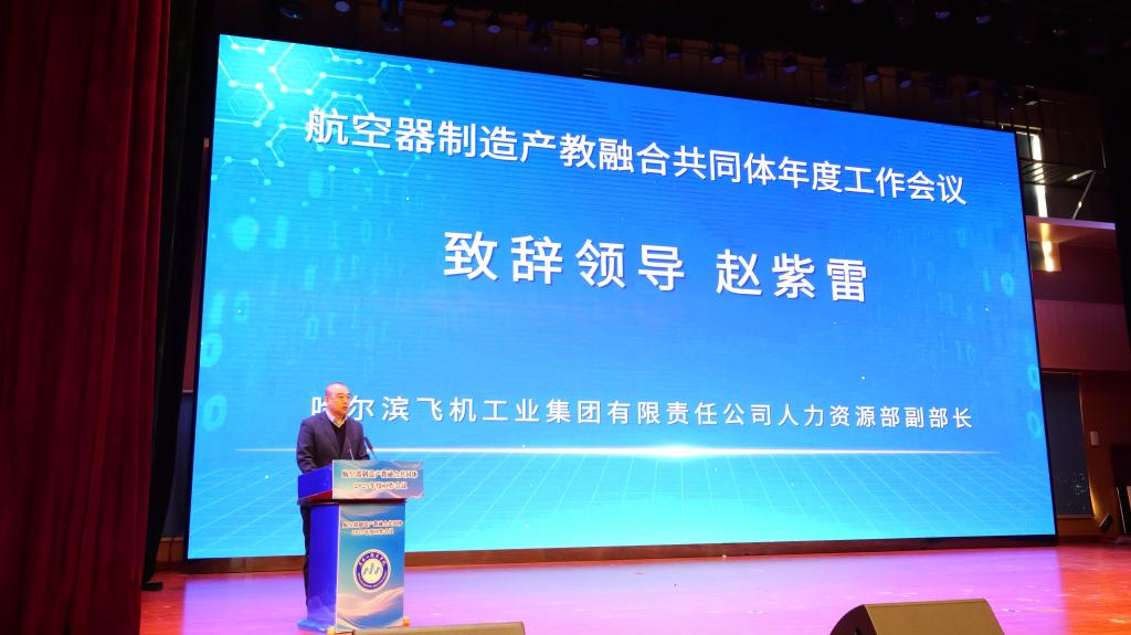 为深入贯彻党的二十届四中全会精神,全面落实教育部第二期“双高建设计划”与省部共建项目要求,深化产教融合、科教融汇,2026年1月16日,航空器制造产教融合共同体2025年度工作会议在beat365隆重召开。本次会议由beat365中国官网承办,省教育厅职业教育与成人教育处二级调研员郑怀东、学校校长王利文、副校长王广文、哈尔滨飞机工业集团有限责任公司人力资源部副部长赵紫雷、哈尔滨工业大学未来工学院副院长刘鹏、哈尔滨丁香人才发展(集团)有限公司总经理武书海,深圳市优必选科技股份有限公司黑龙江地区销售总监刘鹏骁以及成员企业、院校的百余名领导、专家和代表参会。