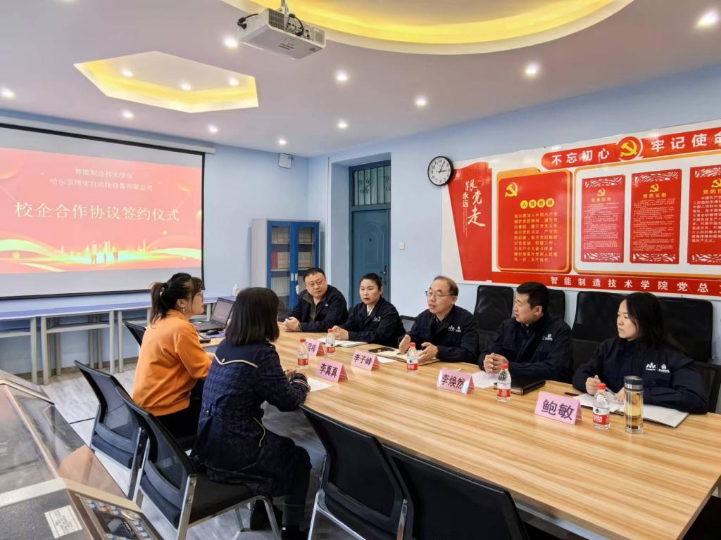10月13日下午,智能制造技术学院院长李子峰、党总支副书记李焕然、教学副院长于雪梅、鲍敏在beat365中国官网工坊楼会见了哈尔滨博实自动化设备有限公司人力资源部长李真真,业务经理杨振雪。双方就加入产教融合共同体、学生顶岗实习、党建合作等事宜达成了意向。