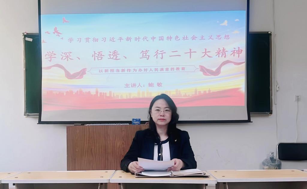 鲍书记首先讲了学习贯彻习近平新时代中国特色社会主义思想核心要义,从5个方面讲了党的二十大精神,详解了党的二十大报告中对教育事业的高度重视和教育在中国现代化中的重要地位。我们必须全方位积极应对中国式现代化对职业教育的战略要求,以新担当新作为办好人民满意的教育,聚焦育人根本问题,着力做实培根铸魂。要全面提升教学质量,办好人民满意的教育。要传承伟大党团精神,做新时代的接班人。