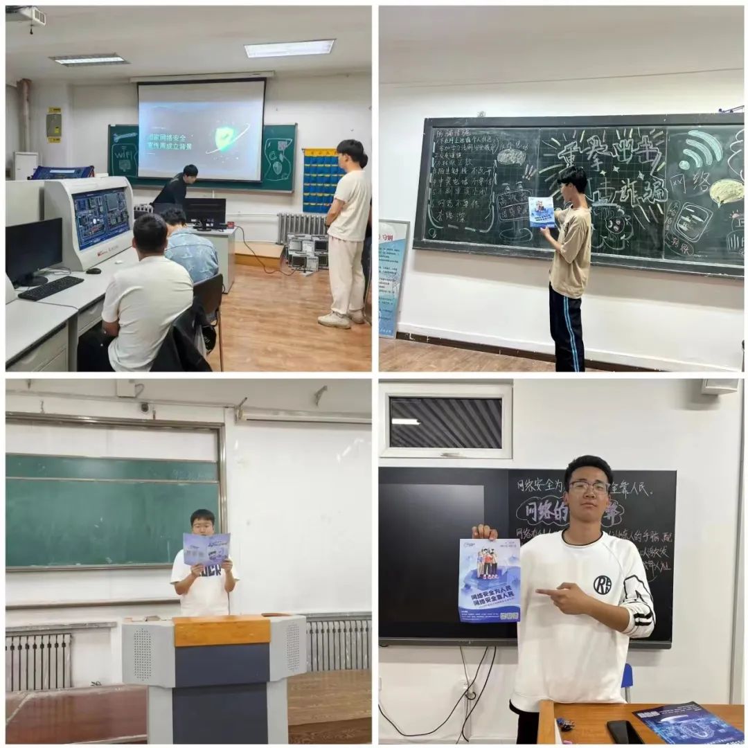活动期间,各班级积极组织,广泛宣传和普及网络安全法律、法规、政策和相关知识,强化同学们对网络安全教育工作的参与意识和责任意识,倡导同学们依法文明上网,自觉抵制网络低俗之风,传播正能量,弘扬主旋律。