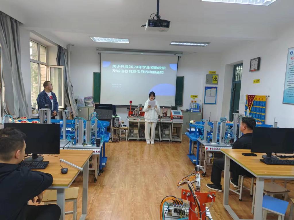 为进一步宣传国家资助政策,激励广大学生奋发自强、立志成才、感恩奉献,智能制造技术学院团总支于2024年5月14日晚自习期间开展资助政策及诚信教育宣传活动。我院宣讲团成员深入2023级各班进行宣讲。