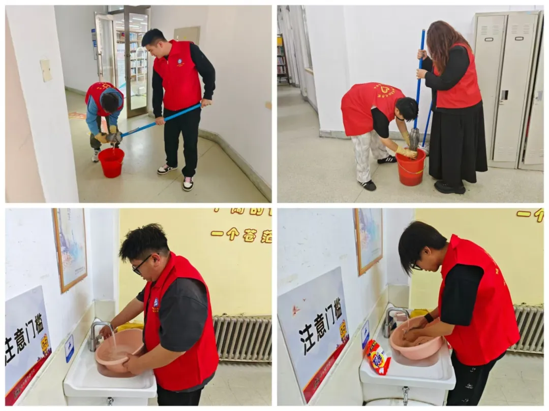 志愿服务期间,志愿者们积极打扫馆内卫生,仔仔细细打扫馆内每一处角落,将图书馆的书架和地面清理得一尘不染,在志愿者们的细心打扫下,哈尔滨市图书馆内焕然一新。