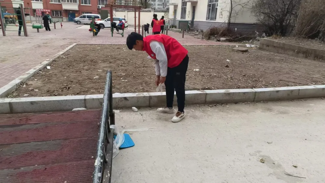 志愿者们身穿红马甲,手持清洁工具,清理垃圾、用实际行动为社区环境美化贡献力量。在大家的共同努力下,社区环境得到了显著改善,居民们纷纷点赞,表示要自觉维护环境卫生,共同守护美丽家园。