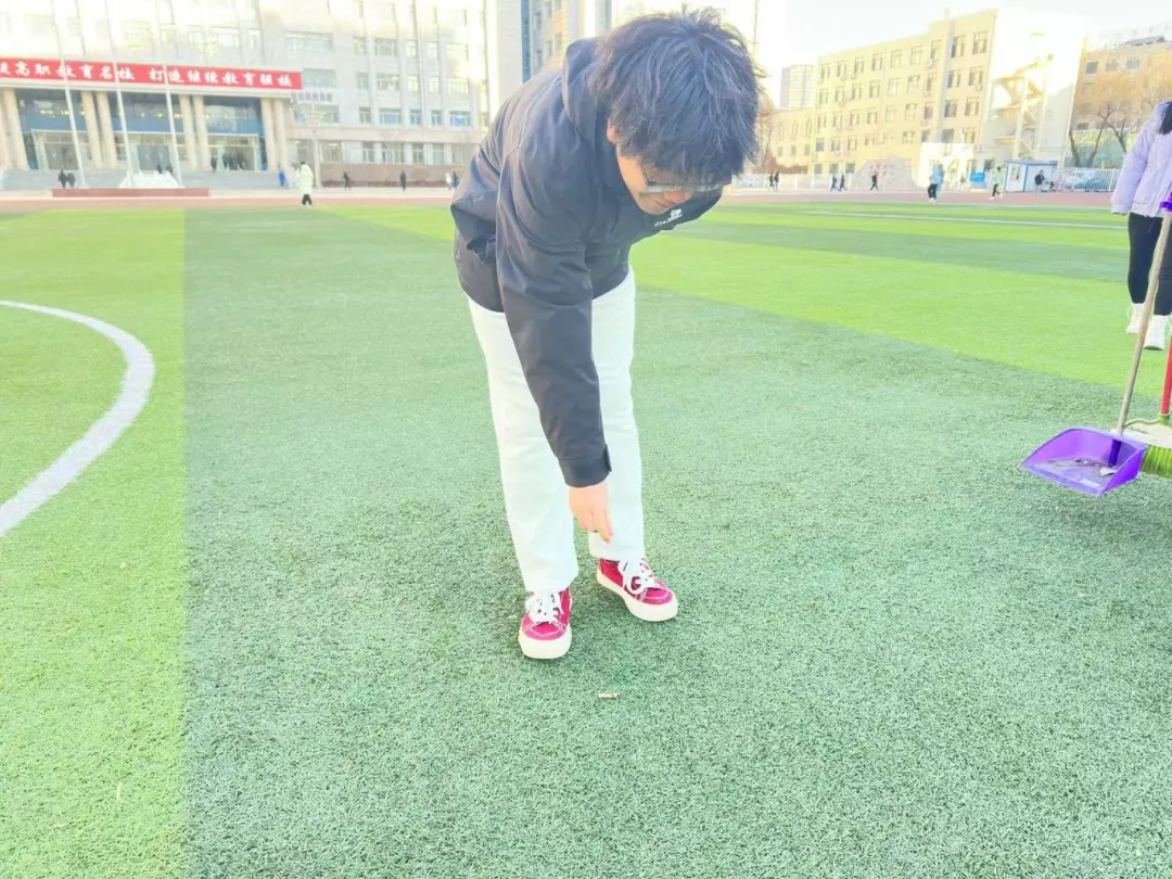 于当晚8:40分,对操场进行二次清扫与检查。大家确保每一个角落都清洁干净。为全校师生创造一个干净、整洁的操场环境,为学校的环境建设贡献我们的青春力量。让我们共同为美好的校园环境努力!