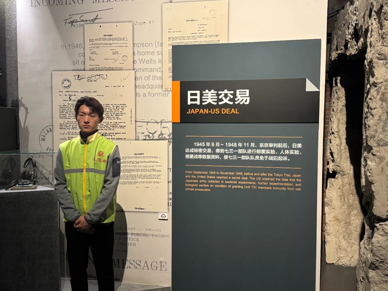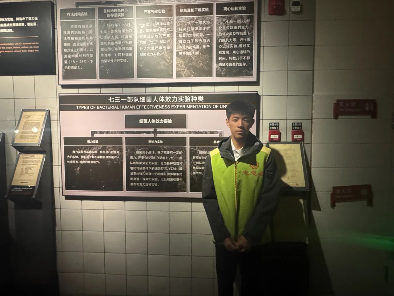 2025年9月24日上午8:30,社团联合会主席董轩阁、副主席朱泓及志愿服务部部长孙泽旭带队,17名同学共同参与侵华日军第七三一部队遗址第12期志愿服务。