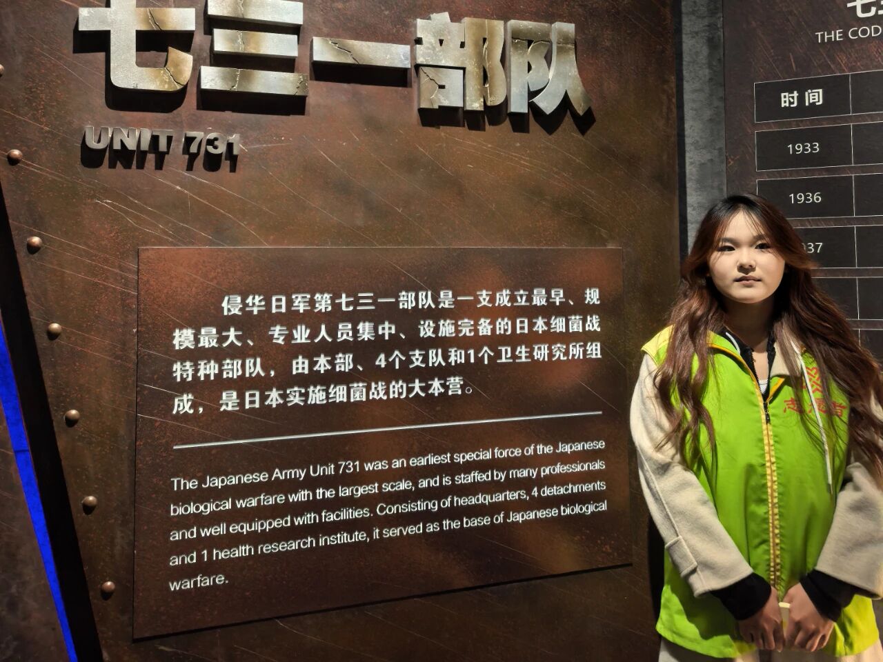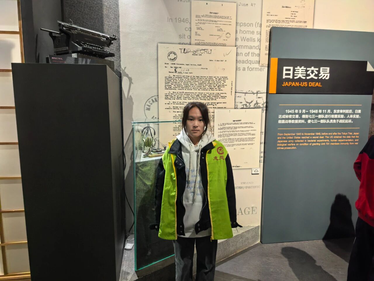 2025年10月18日中午11:30,社团联合会主席董轩阁、活动部部长杨朝淇带队,共10名同学,共同开展赴侵华日军第七三一部队遗址第13期志愿服务。