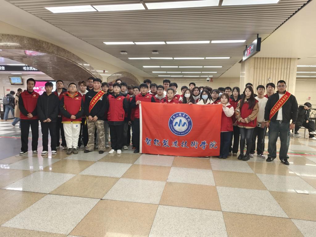 2025年11月1日13:00,智能制造技术学院团总支组织开展第4期哈尔滨市地铁博物馆站志愿服务活动。本次活动由社团联合会副主席朱泓与社团联合会志愿服务部部长孙泽旭共同带队,39名入团积极分子参与其中,一同前往博物馆地铁站开展志愿服务。