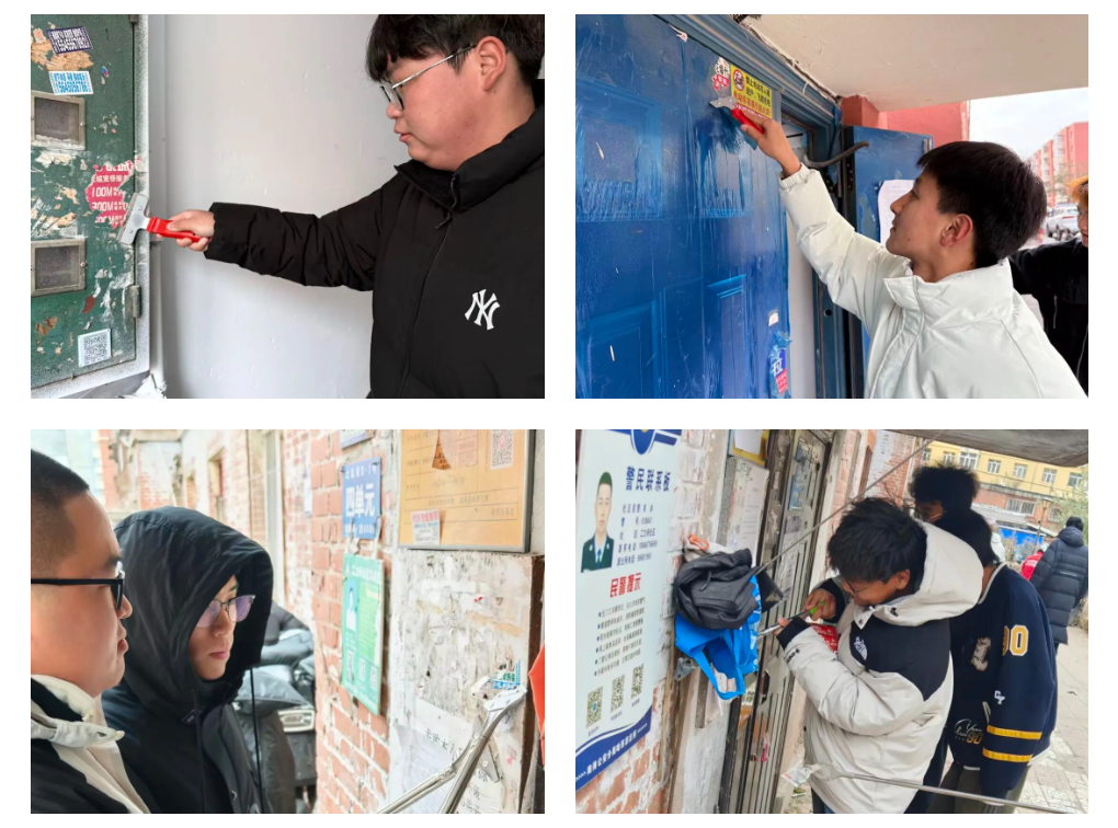 活动现场一派热火朝天,学生们以“改善社区环境,服务居民生活”为目标,专心致志地清理着墙面的小广告。他们的辛勤劳动被居民们看在眼里,大家纷纷点赞,称社区环境焕然一新。