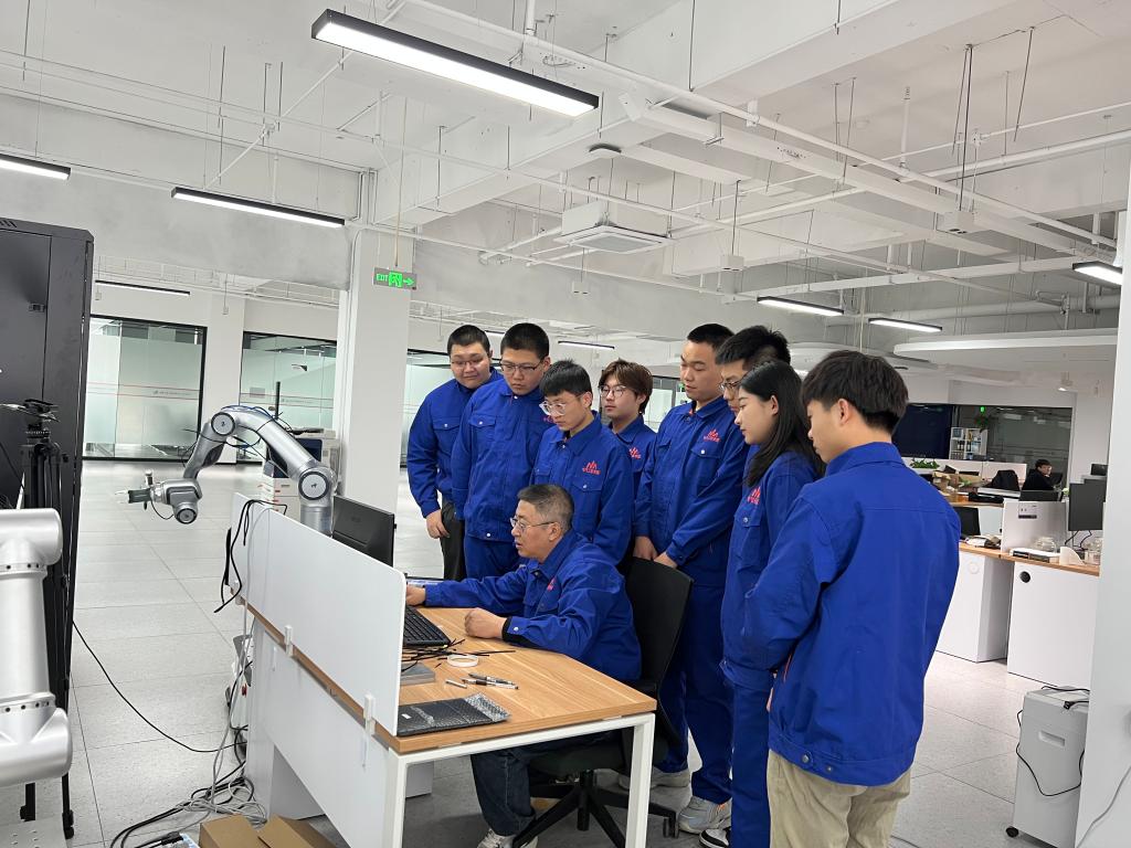 省级技能大师工作室领办人杨宏帅老师,指导机器人与人工智能学生兴趣小组以师带徒方式开展技能训练,包括机器人硬件设备调试和软件编程的实践指导,提升学生技术技能水平,为学生创新创业和对接专业岗位的就业打下良好基础。