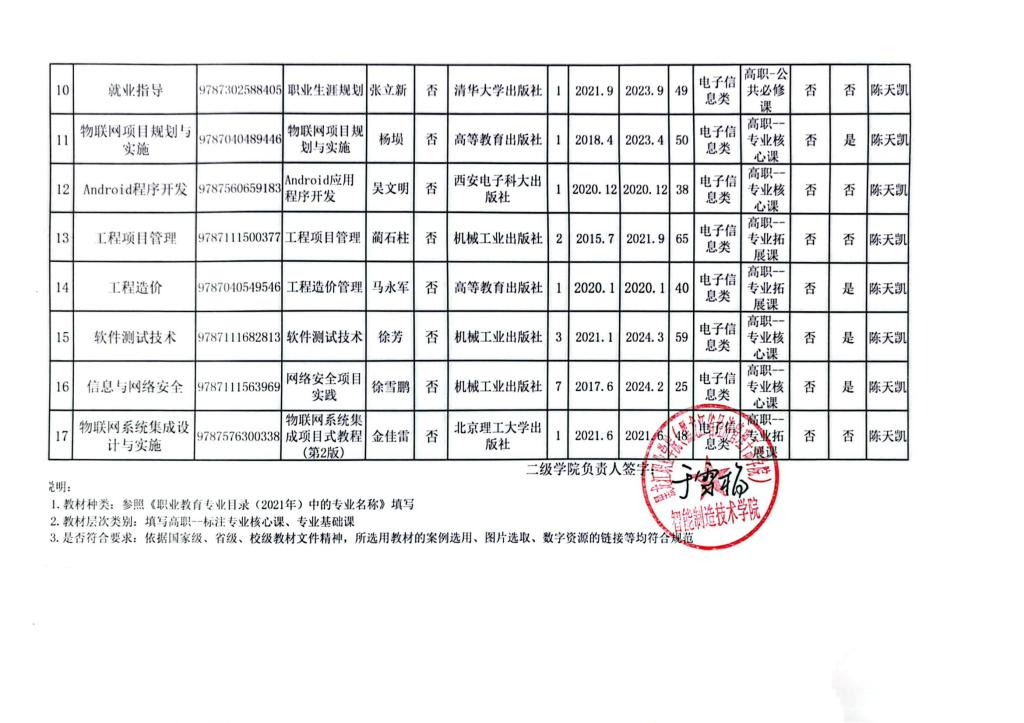 物联网应用技术专业2024--2025学年度第二学期省属职业院校教材使用情况统计表