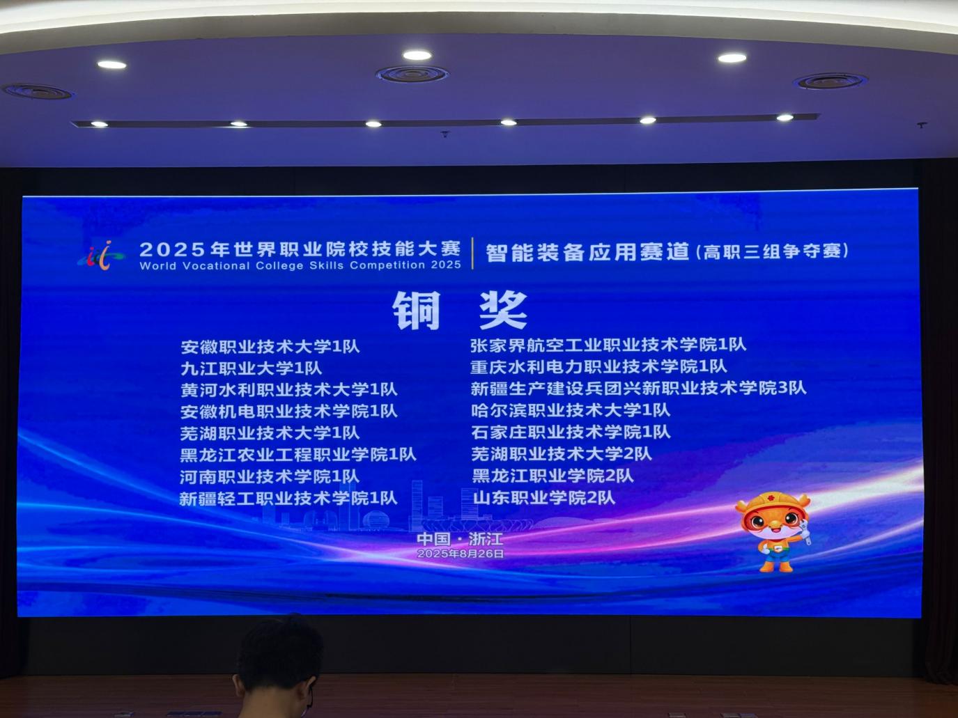 8月20日至26日,2025年世界职业院校技能大赛总决赛在浙江杭州开赛。beat365中国官网智能制造技术学院学子捷报频传,在智能装备应用赛道斩获两项铜牌,尽显龙江职教风采。