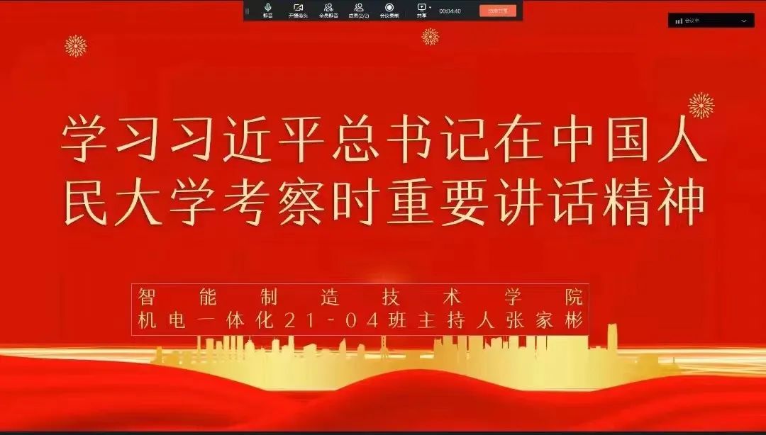 在五四青年节即将到来之际,中共中央总书记、国家主席、中央军委主席习近平2022年4月25日上午在中国人民大学考察调研。智能制造技术学院组织同学深入学习习近平总书记在中国人民大学考察时的重要讲话,习近平总书记在中国人民大学考察时的重要讲话精辟阐述了实现民族复兴历史伟业赋予高校的战略使命,鲜明论述了高素质教师队伍的深厚内涵,生动描述了堪当民族复兴重任的时代新人的价值追求。