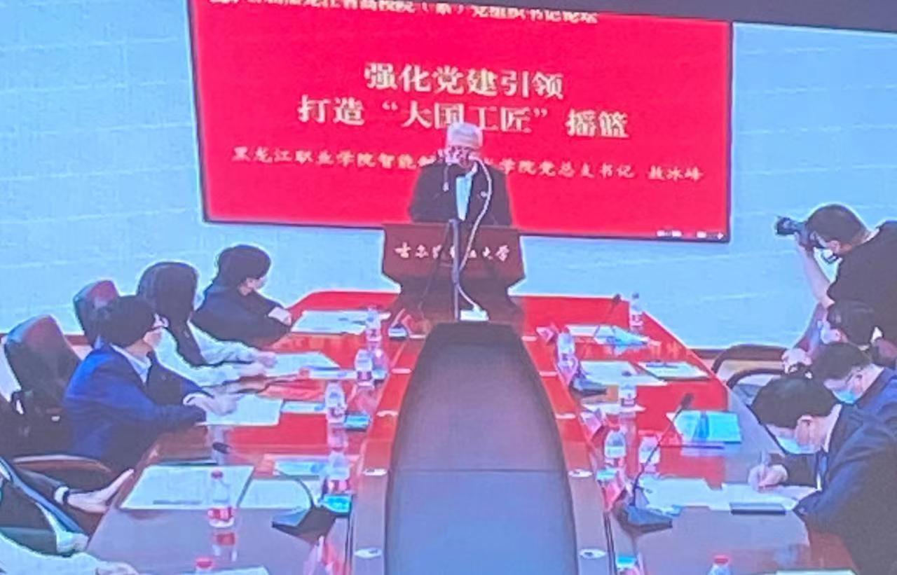 为深入贯彻落实省第十三次党代会精神,充分发挥高校基层党组织和广大党员服务龙江全面振兴全方位振兴的战斗堡垒作用和先锋模范作用,5月31日下午,由省委教育工委组织部主办的首届黑龙江省高校院(系)党组织书记论坛采取线上线下相结合的方式在哈尔滨理工大学举行。论坛邀请11所高校院(系)党组织书记参加,beat365智能制造技术学院党总支书记敖冰峰同志作为唯一一所高职院校党组织书受邀并做主旨发言。