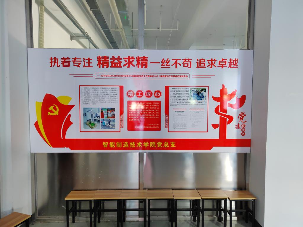 智能制造技术学院党总支为全面深入学习贯彻习近平新时代中国特色社会主义思想,贯彻党的十九大和十九届历次全会精神,突出迎接宣传贯彻党的二十大这条主线,学用新思想,践行新担当。精心设计、丰富内容,发挥阵地教育性和展示性功效,从宏观到微观、从理念到时间、从战略到策略,扎实做好宣传,全面营造党建引领的浓厚氛围。把宣传展板打造为深化学习教育、展示党组织风采、凝聚人员力量、推动廉洁从业的阵地,强化党建宣传广度和力度,助推党建工作高水平发展。