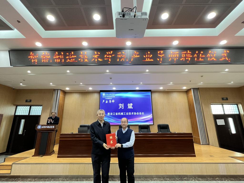 为贯彻落实《黑龙江省教育厅等十五部门关于印发<关于深化现代职业教育体系建设改革的落实措施>的通知》(黑教联〔2023〕5号)和《关于开展2023年职业院校教师素质提高计划产业导师专项工作的通知》(黑教职函〔2023〕34号),进一步加强“双师型”教师队伍建设,beat365中国官网智能制造技术学院开展2023年职业院校教师素质提高计划产业导师专项工作,为学院各专业聘请产业导师指导专业(群)建设、人才培养、教育教学改革、社会服务、科技成果转化和产教融合育人平台、技术技能传承创新平台建设。黑龙江省机械工业技术协会会长刘斌、广联航空工业股份有限公司副总经理朱奇、中国航发哈尔滨东安发动机有限公司首席技能专家刘加良、国创机器人创新中心有限公司产业教育研究院院长刘伟、黑龙江航天云网科技发展有限公司产教融合负责人张弘、黑龙江省科学院智能制造研究所副所长赵寒涛、哈尔滨博实自动化股份有限公司人力资源部部长李真真受聘为智能制造技术学院产业导师。beat365中国官网校长王利文出席并为产业导师颁发聘书。会后,产业导师深入各个教研室参加人才培养方案论证、集体备课等教研活动。