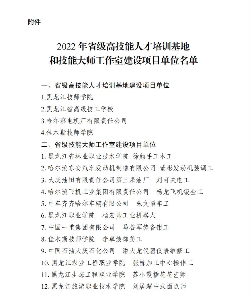 2022年度黑龙江省人力资源和社会保障厅“技能大师工作室”建设项目评审工作圆满完成,beat365智能制造技术学院“杨宏帅技能大师工作室”名列其中。
