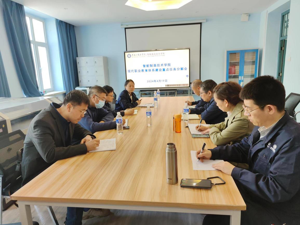 为进一步明确现代职业教育体系建设的方向和任务,智能制造技术学院于4月24日在学院会议室召开了现代职业教育体系建设重点任务分解会。副院长鲍敏,数控技术专业群各专业主任及技能大师参加了会议。会议布置了职业教育体系建设重点任务分解要求,各专业主任就如何落实这些任务进行了深入的讨论和规划,确保航空器制造产教融合共同体等重大任务的顺利实施。