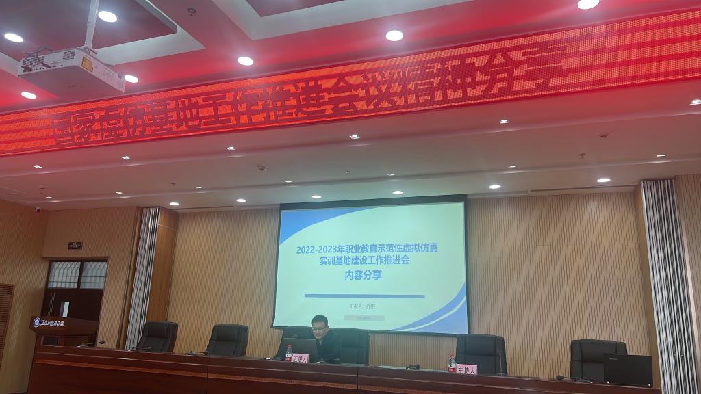 2023年4月7日下午,智能制造学院在工匠楼1106室召开国家虚仿基地工作推进会议精神分享会,学院领导班子成员和全体教师参会。分享会上,工业机器人技术专业负责人乔阳老师从国家虚仿基地工作推进会中的领导致辞、主题报告、专家讲座、平行论坛等四个方面进行了汇报。