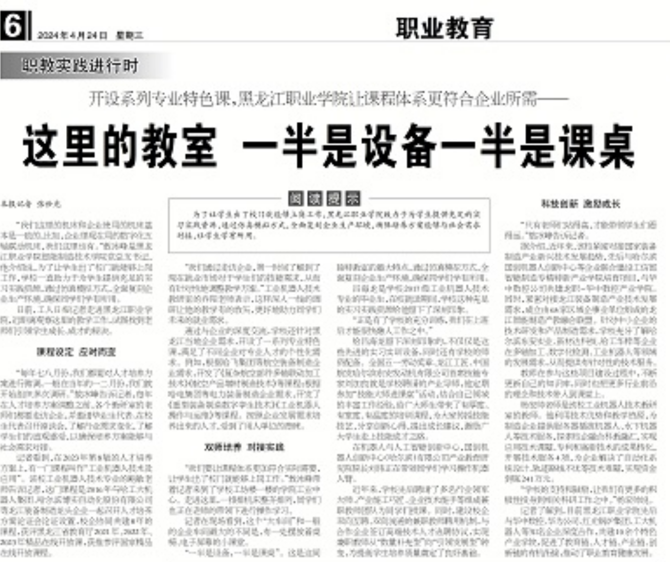 据介绍,近年来,该校紧密对接国家装备制造产业新兴技术发展趋势,先后与哈尔滨国创机器人创新中心等企业联合建设工信部智能制造专精特新产业学院培育项目,与华中数控公司共建龙职-华中数控产业学院。同时,紧密对接龙江装备制造产业技术发展需求,成立由65家区域企事业单位组成的龙江智能制造产教融合联盟。针对中小企业的技术研发和产品制造需求,学校充分了解哈尔滨东安实业、新材达科技、哈工华粹等企业在多轴加工、数字化检测、工业机器人等领域的发展需求,从而提供有针对性的技术服务。