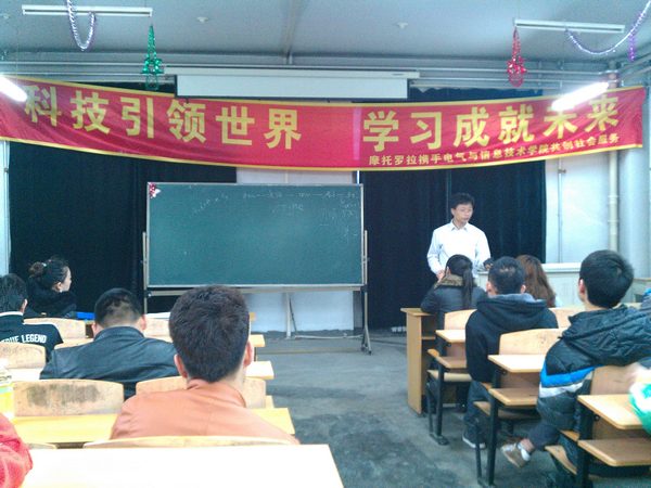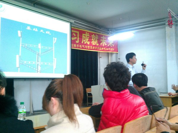 讲座中陈福军工程师用诙谐的语言,通俗的表述,精辟的分析,准确的计算向同学们敞开了移动通信领域的美好世界,也吸引了非常多的同学对此产生了兴趣。对于感兴趣的同学摩托罗拉工程公司还邀请同学们参观了公司。