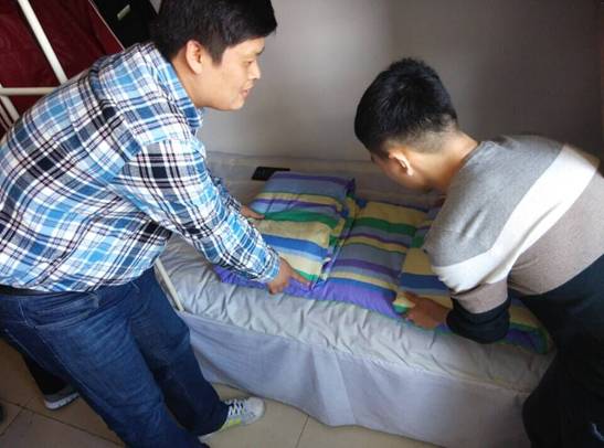 倡导学院以服务促管理的学生管理理念,同时为了更好地推进“标准化寝室”建设,深入寝室指导学生整理内务。让学生掌握整理内务的方法,教育学生端正态度,通过整理内务这一行为习惯促进形成积极向上的认真负责的思想,进而提高学生们的个人素质。