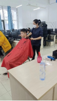 受新冠肺炎疫情影响,学校根据疫情防控要求实行封闭式管理。为解决封校期间同学们的“头”等大事,我院领导于11月12日上午特邀校外理发团队在工匠楼104室,设立临时理发点,让同学们不出校门就能享受专业周到的理发服务。