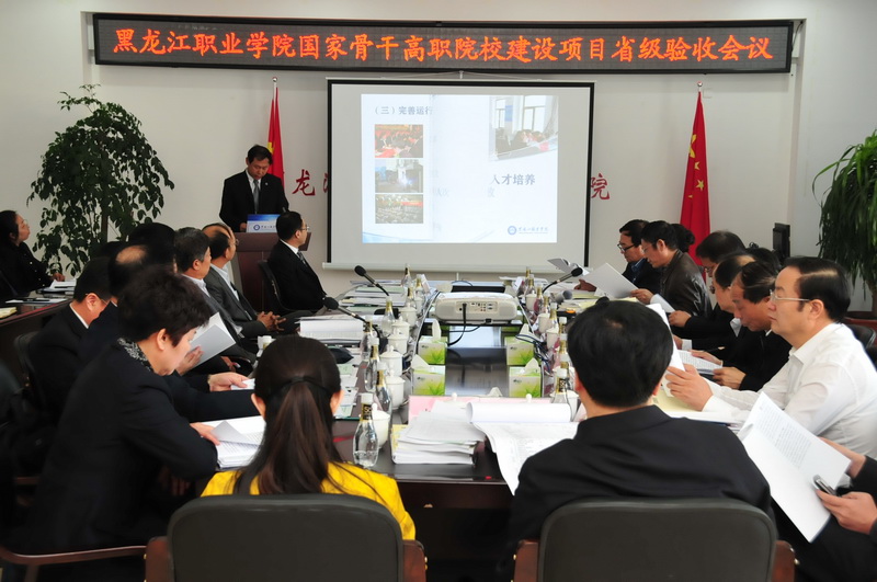 4月25日上午,专家组在学院党委会议室组织召开了国家骨干高职院校建设项目省级验收汇报会。省教育厅副厅长房文斌、省工业和信息化委员会副主任高玉学等领导出席汇报会。学院全体校领导及相关部门负责人、各建设项目负责人参加汇报会。汇报会上,与会专家和领导共同观看了学院国家骨干高职院校建设成果展示视频,查阅了项目总结报告及相关材料,听取了院长赵继会代表学院作了骨干院校项目建设情况汇报和工商管理学院物流专业团队带头人刘莉做了物流专业建设情况汇报,与举办方领导和业务主管部门领导就骨干院校建设情况、使用情况进行对标式考察,对照学院《建设方案》及《任务书》,对项目完成的程度、质量、建设效果等进行审核,依据审计报告对项目建设资金使用情况进行了审核,并对重点专业建设项目进行了现场考察。