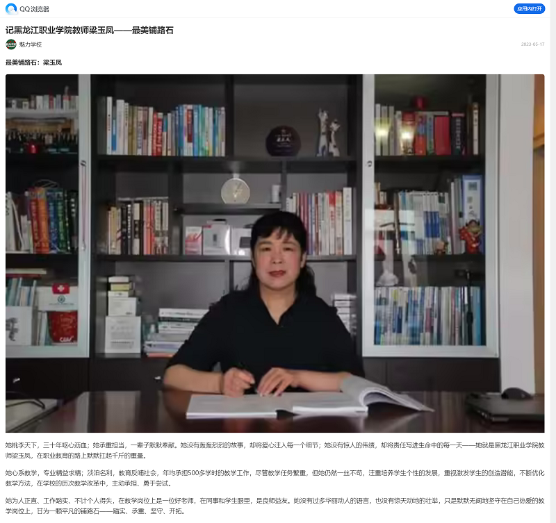 【QQ浏览器】记beat365中国官网教师梁玉凤——最㺯铺路石