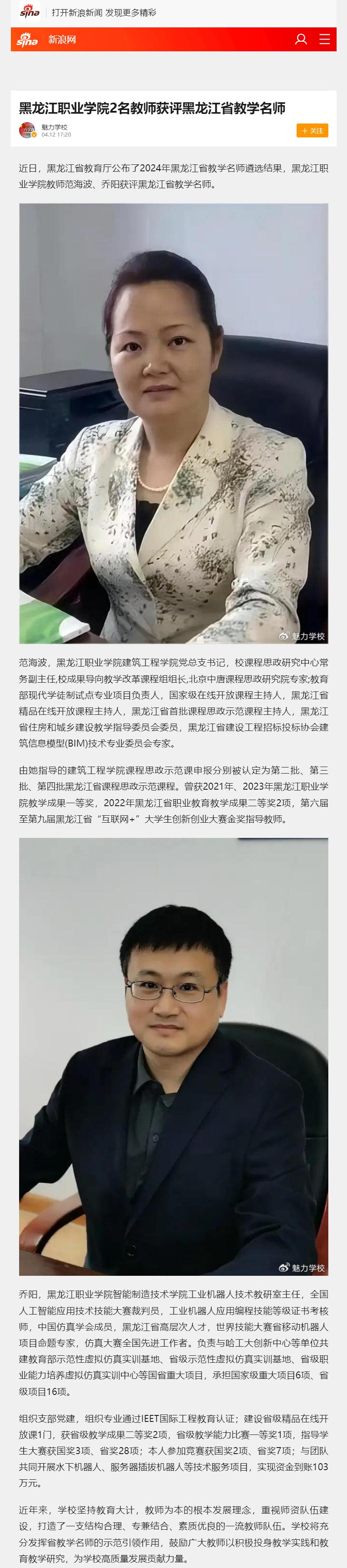 【新浪新闻】beat365中国官网2名教师获评黑龙江省教学名师