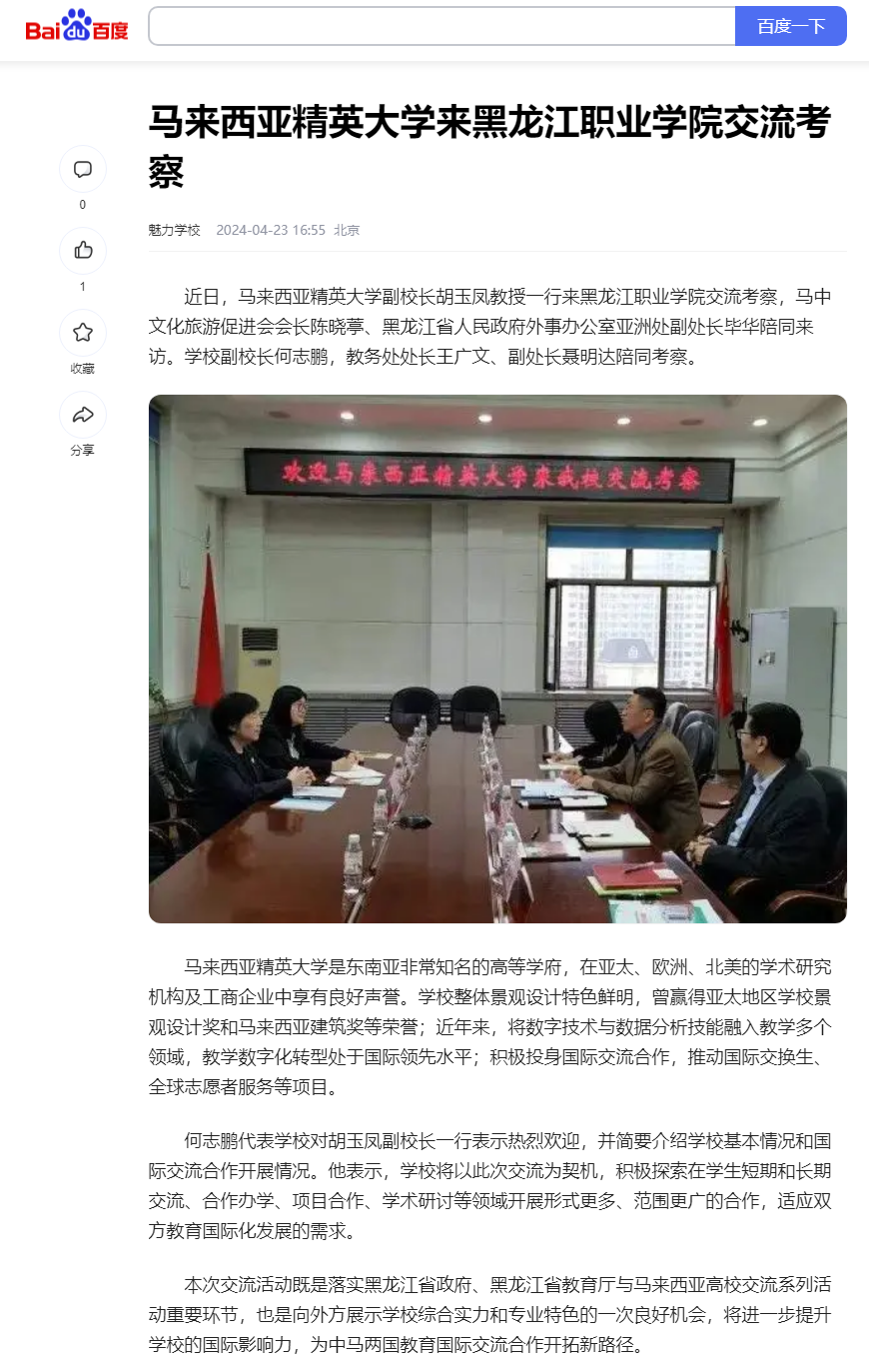 【百度新闻】马来西亚精英大学来beat365中国官网交流考察